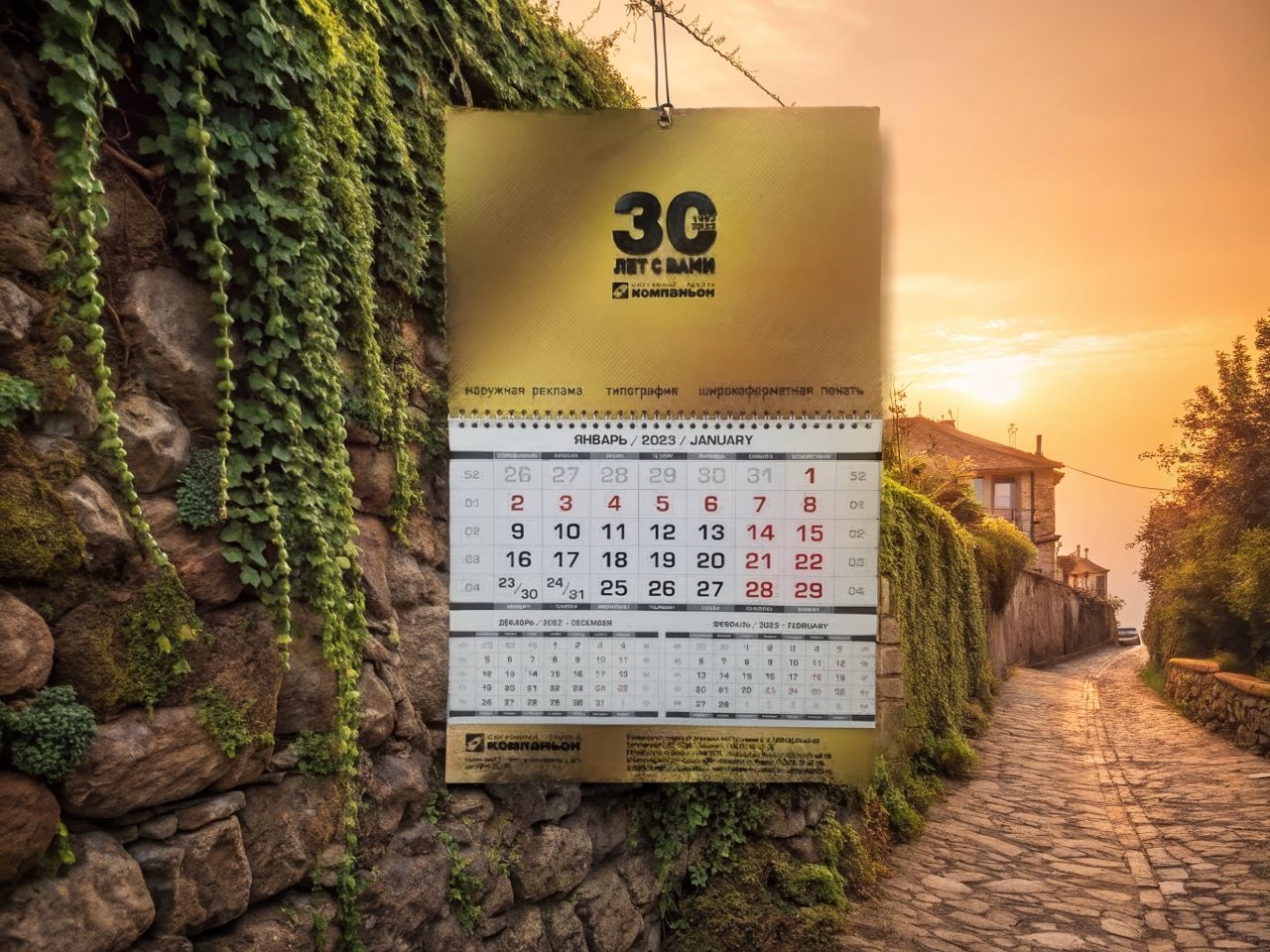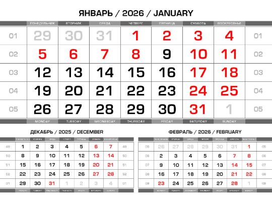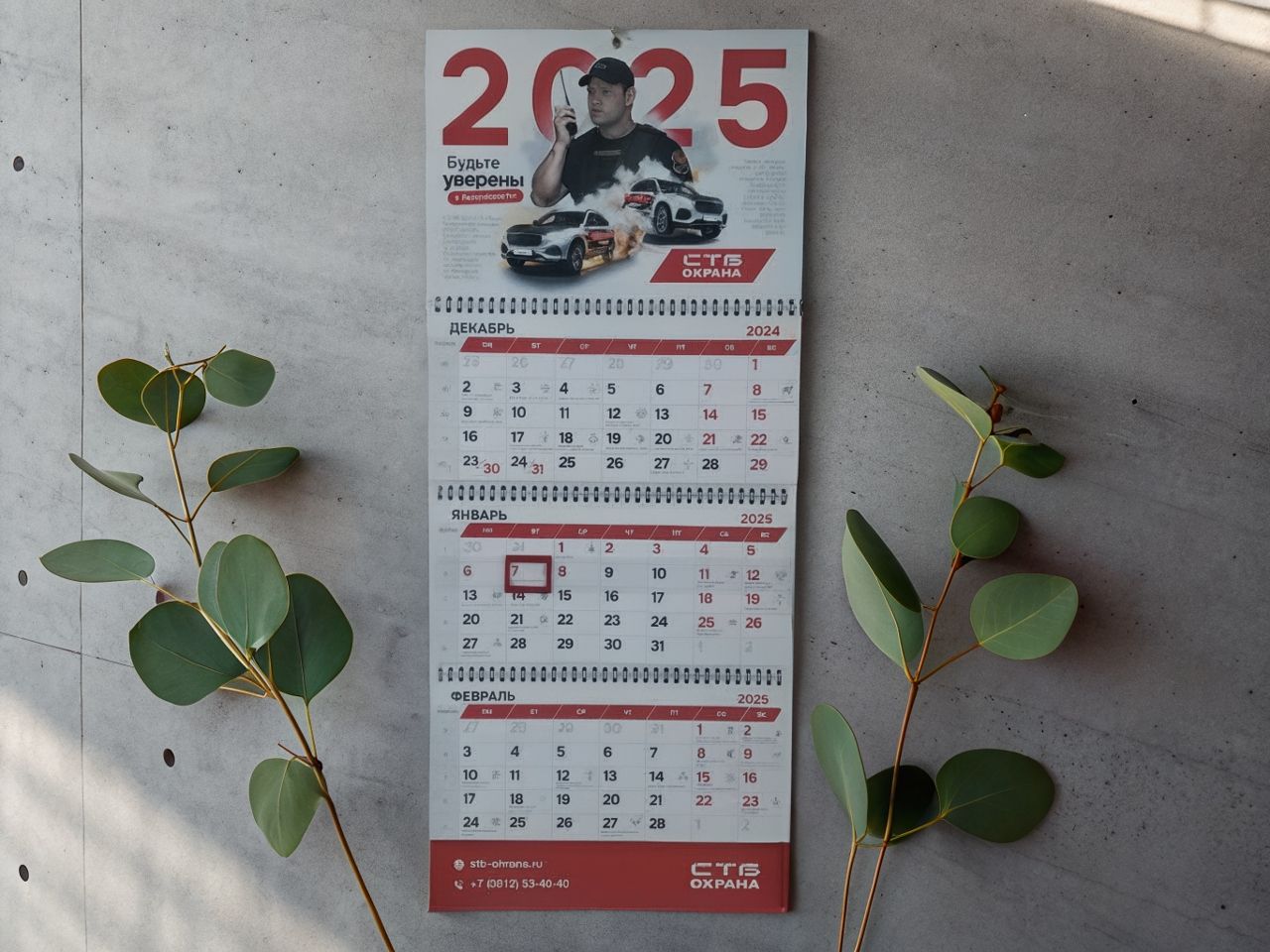 Настенный календарь трехблочный. НА плотной бумаге и с креплением на пружине